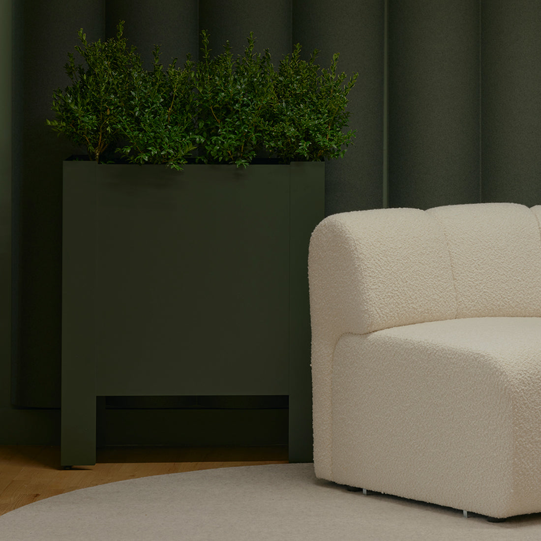 We’re all about designs that help you better divide spaces in an open floorplate while maintaining openness and inviting collaboration. Add to the end of a workstation, lounge or call booth to add some biophilia to your workspace, or simply use the freestanding design to break up empty wallspace or a glass partition.