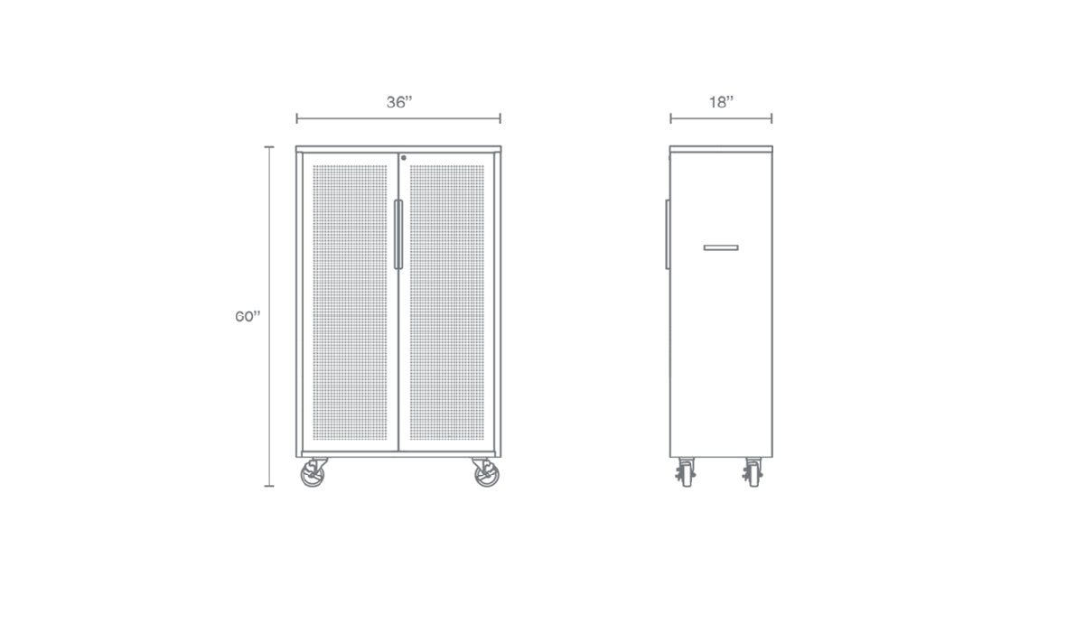 Made from 18/20 gauge steel with silent, soft-close euro hinges, flush side pulls to allow for simple movement from room to room, and three adjustable shelves with 75 pound weight capacity each, distributed evenly.