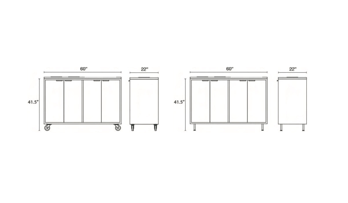 60"W x 22"D x 41.5"H