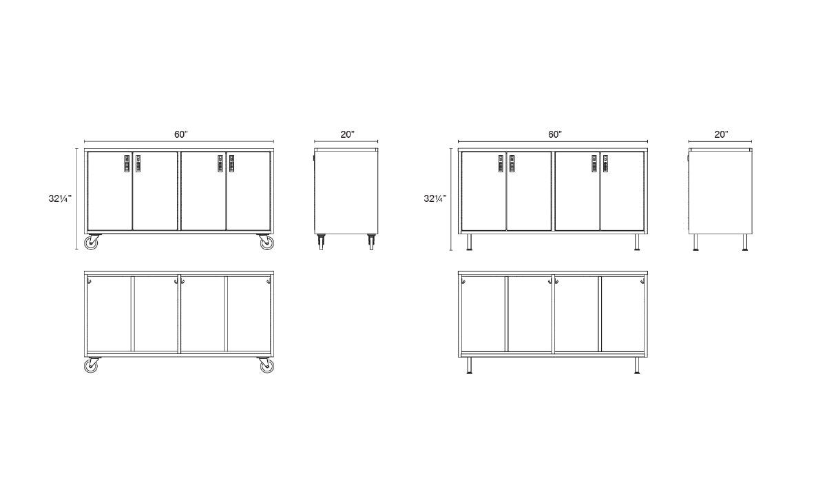 Modern industrial details include full-length piano hinges and oversized 4" thermoplastic casters for smooth moves on and off carpet. The perfect powder-coat in twelve exclusive, UV-resistant colors resists fading and chipping. And unlike lockers made from wood composites, ours has zero off-gassing, made from 53% recycled materials and it’s completely recyclable.