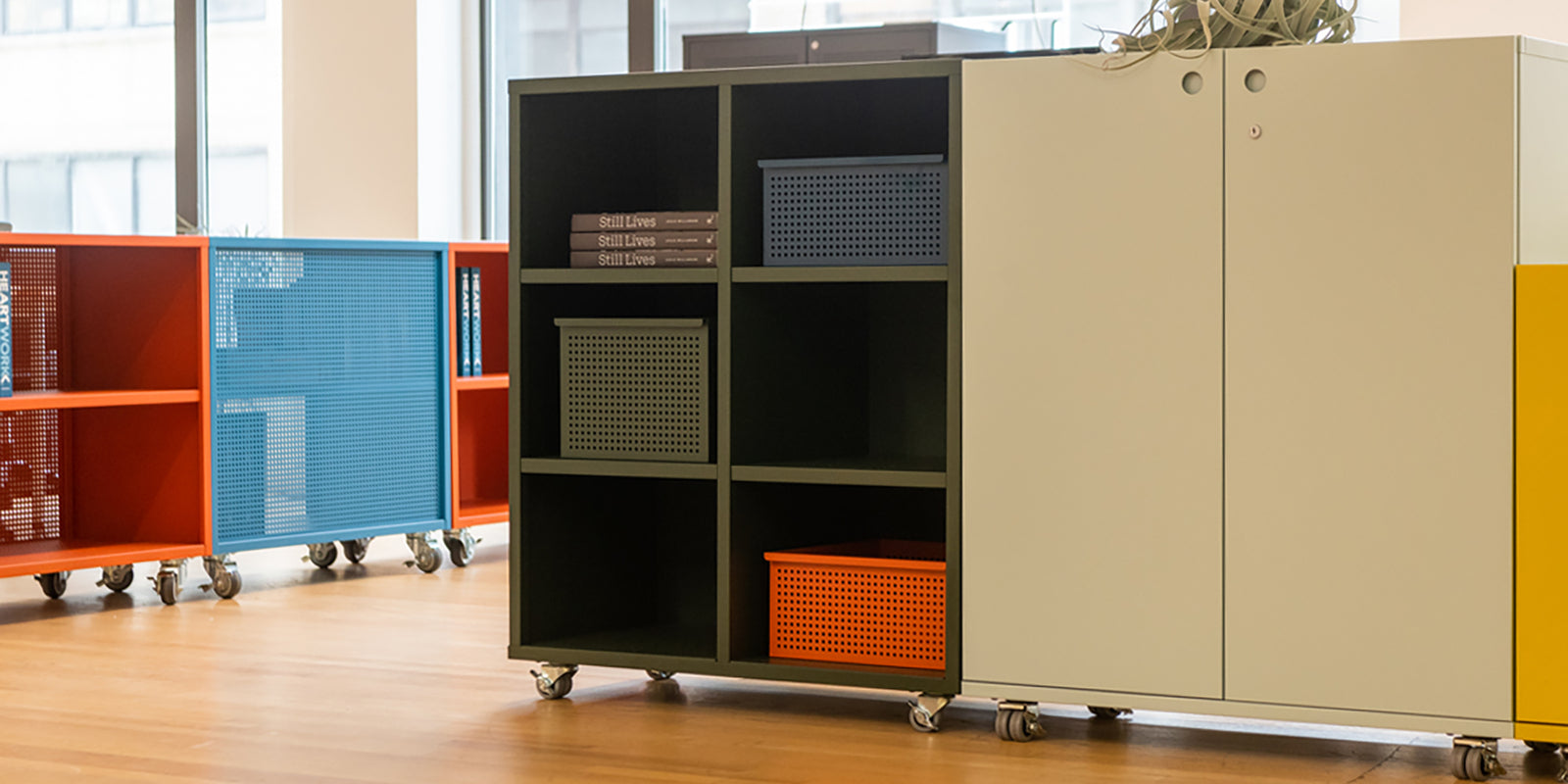 Made from durable 18-gauge steel, these units are fully magnetic, enabling the back to serve double duty as a desk-side idea board. Casters available for additional flexibility.