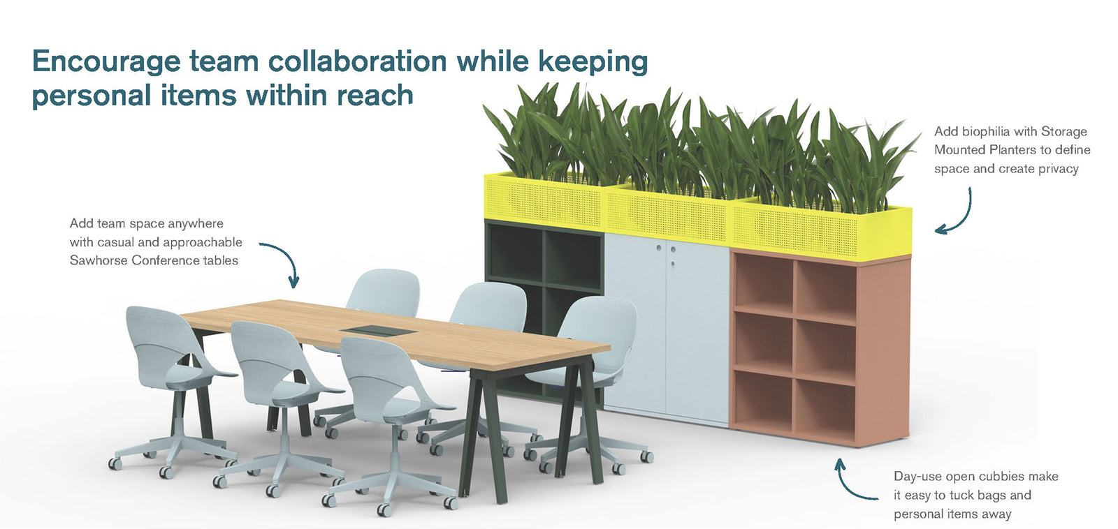 Encourage team collaborations while keeping personal items within reach