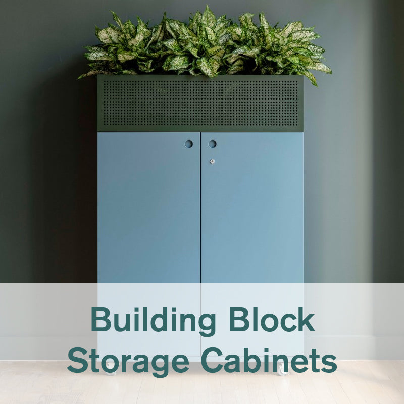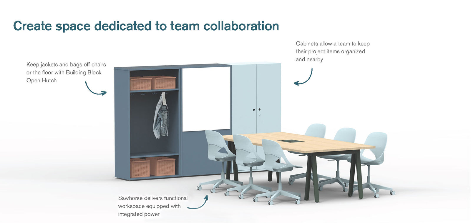 • Building Block Cabinets house shared supplies and resources or give teams a safe place to keep work in progress