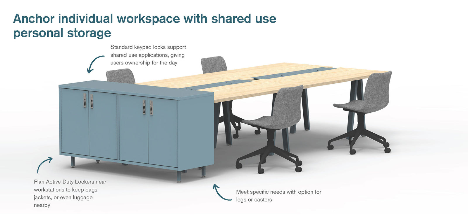 • Active Duty Lockers deliver secure personal storage with the look and feel or freestanding furniture