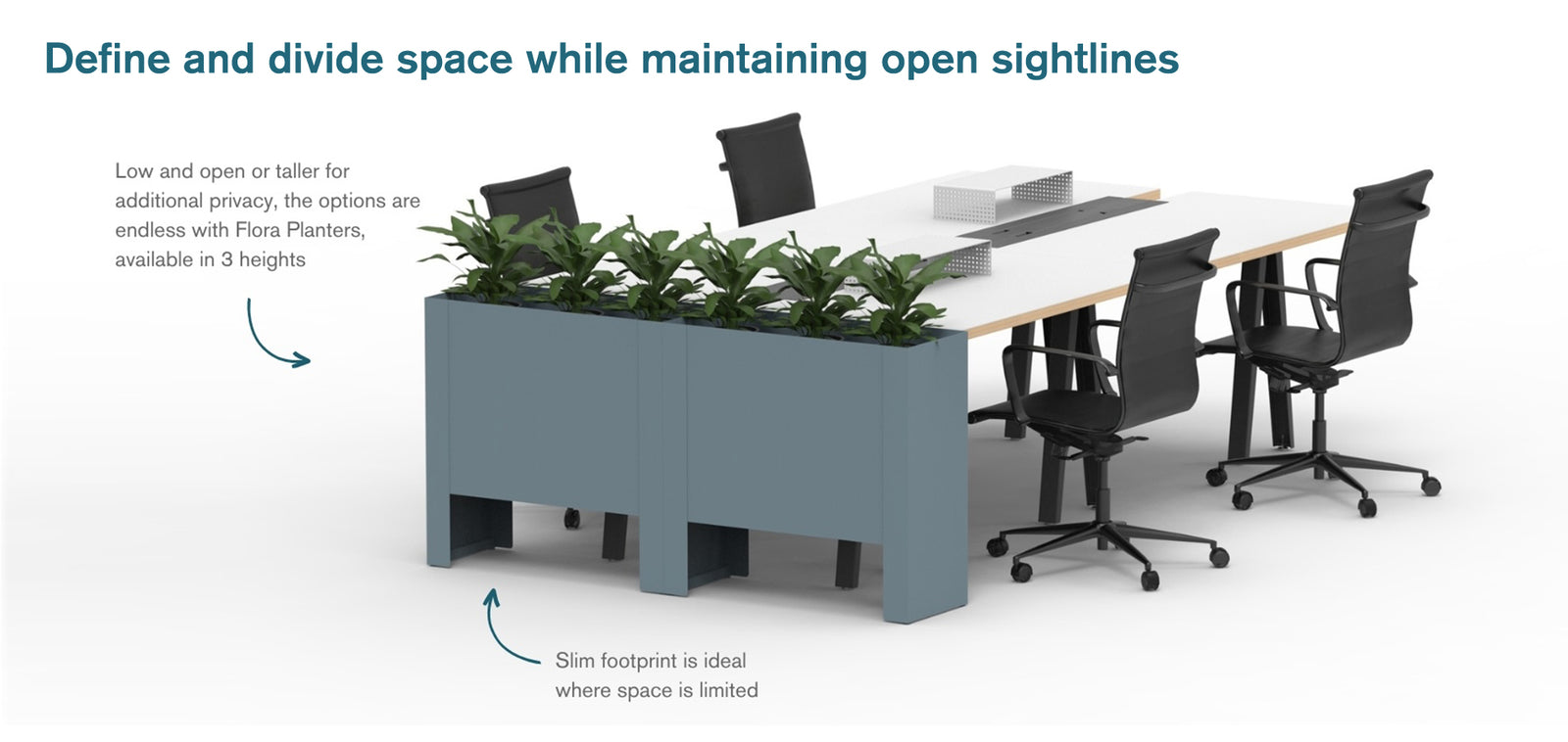 • Plan 2 Flora Planters side-by-side to create a standard 60” wide workstation end cap