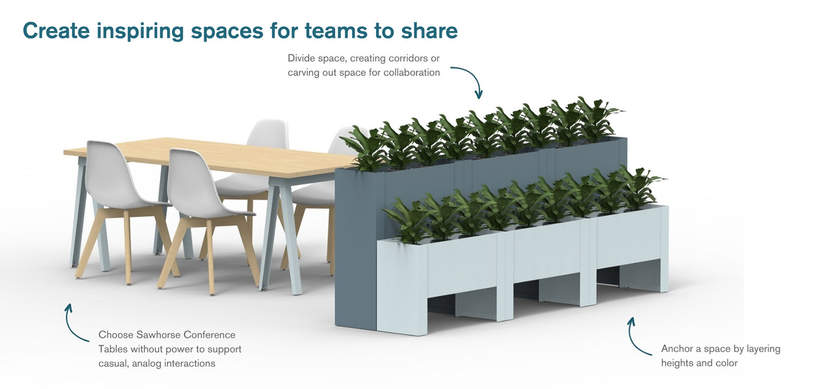 • Use planters to define and anchor various zones within the open plan