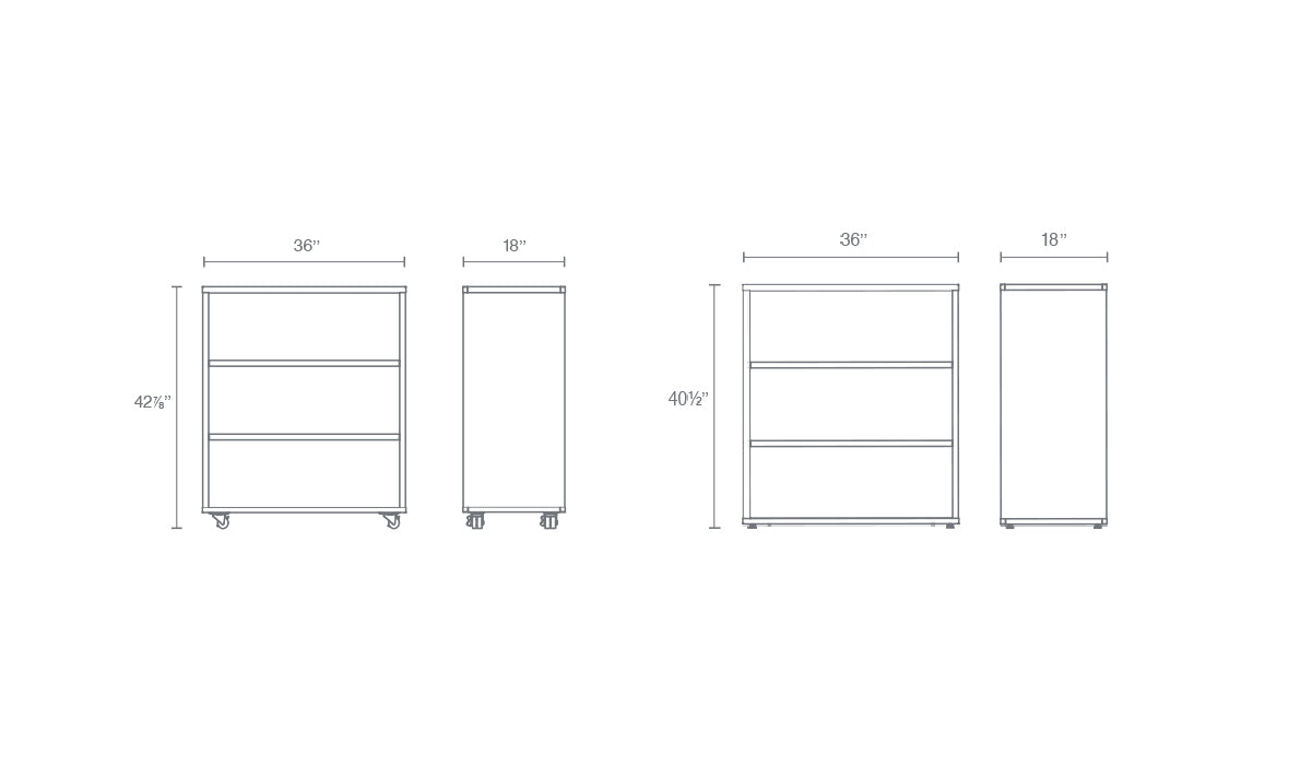 36"W x 18"D x 40.5"H with levelers