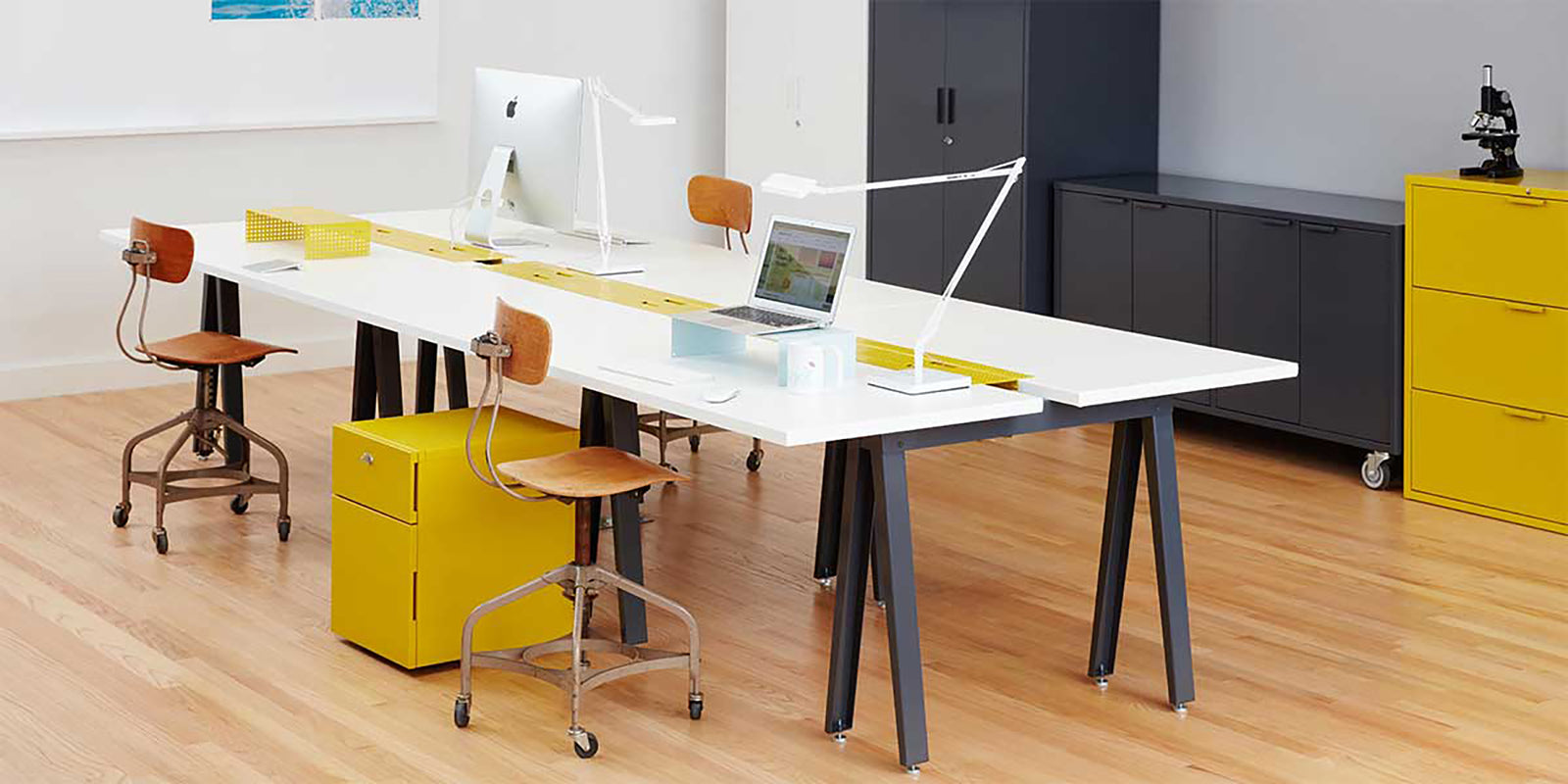 We've moved the iconic Sawhorse Desk out of the garage and into the workspaces of creative teams today. A desking system designed to accommodate growth, our Sawhorse Desk offers an elegant, efficient solution for organizing and celebrating your work-not hiding it.