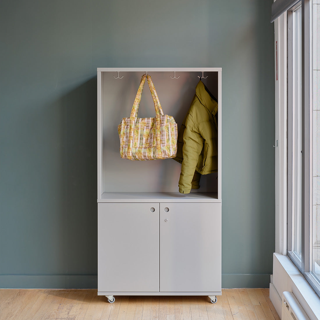 We think of our Building Block collection as adult Legos: modular, colorful, and able to be configured in a myriad of functional tableaus. Fixed shelves and closed backs create equal-sized cubbies to accommodate whatever you need to store, from shoes to bags, to books, and beyond.