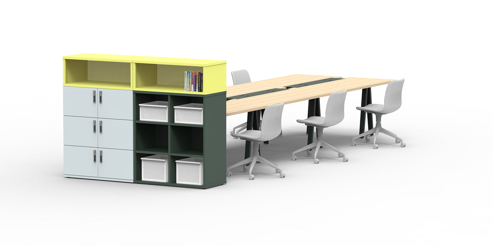 Made from durable 18-gauge steel, these units are fully magnetic, enabling the back to serve double duty as a desk-side idea board. Choose from Heartwork’s 12 exclusive matte finishes.