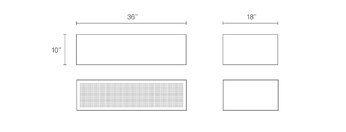 The 36W Storage Mounted Planter can be ganged to the top of any Building Block 36W unit or the Active Duty Bookcase. Choose solid or perforated sides to add visual depth and delight. Ships with liner included.