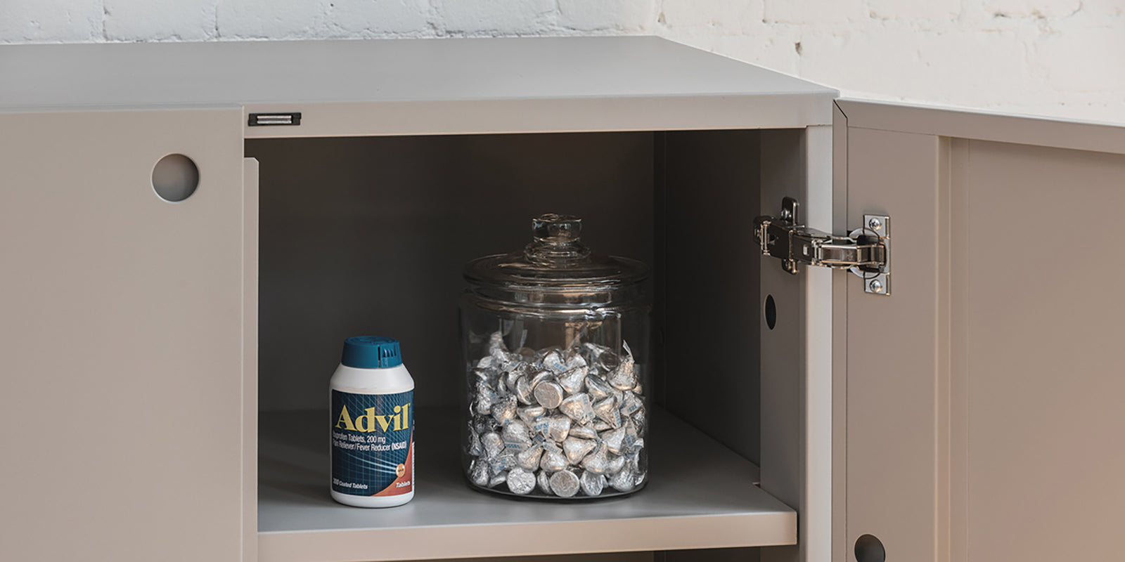 Designed to mingle with other designs in our Building Block Collection, the cabinets feature our flush porthole door pulls and frameless design for seamless side-by-side ganging. We make every unit from 18-gauge, commercial-grade steel so it can endure many years of heavy use and hold up to 75-pounds per adjustable shelf.