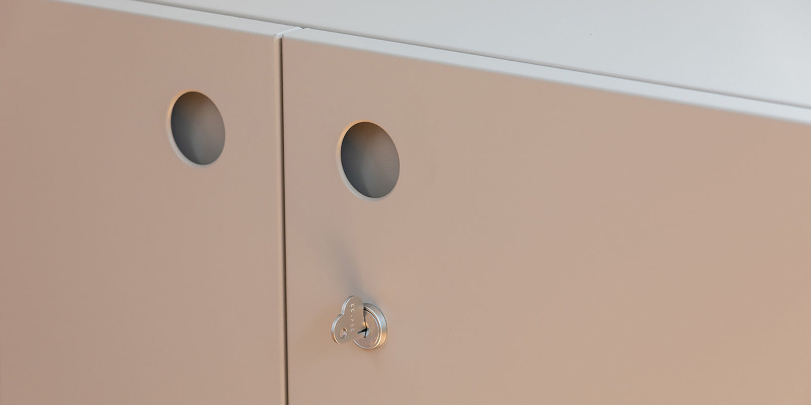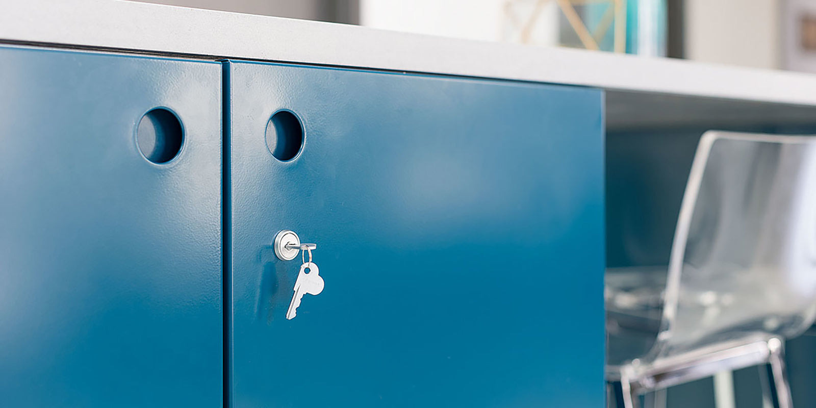 Let’s face it, each person brings “stuff” with them when they walk through the doors of their office each day. Where they put their belongings, and consideration to how they secure them, is crucial to create a space that functions as well as it looks.